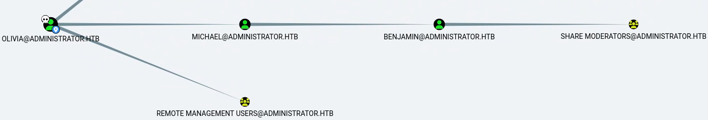 En étudiant notre utilisateur olivia@administrator.htb, on voit la chaîne de contrôle suivante :