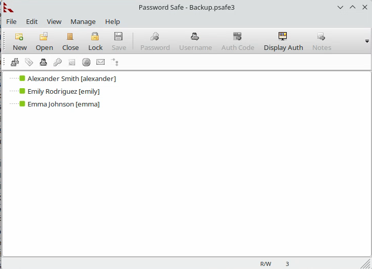 On obtient simplement ce fichier Backup.psafe3. En cherchant sur Internet, on trouve que ce type de fichier vient d’un logiciel appelé Password Safe. J’installe le logiciel depuis l’Arch User Repository :