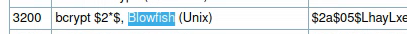 Apparemment, l’algorithme de chiffrement s’appelle Blowfish. Dans la documentation hashcat, on trouve cette ligne :