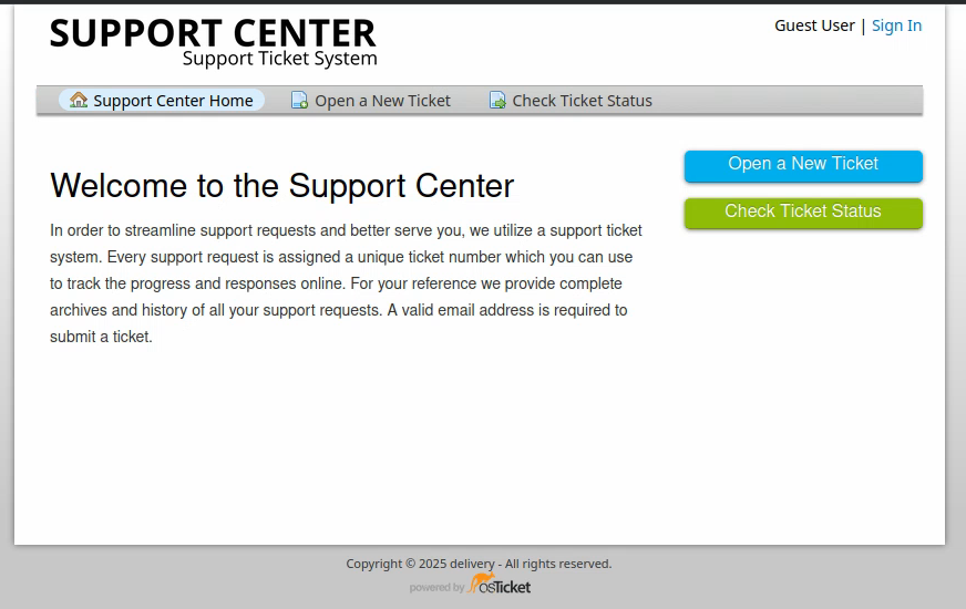 Le lien vers le helpdesk nous redirige vers le domaine helpdesk.delivery.htb: