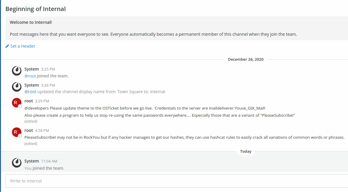 maildeliverer:Youve_G0t_Mail! et on apprend que beaucoup de mots de passe sont des variants de PleaseSubscribe!. C’est amusant de voir les messages nous donner des indices aussi explicitement ;)
