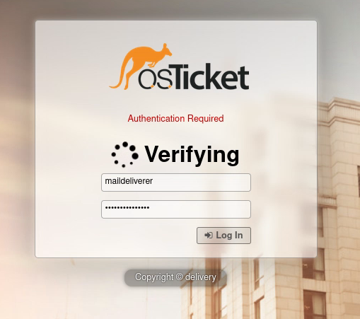 On s’authentifie sur osTicket en tant que l’agent dont on vient d’obtenir les identifiants :