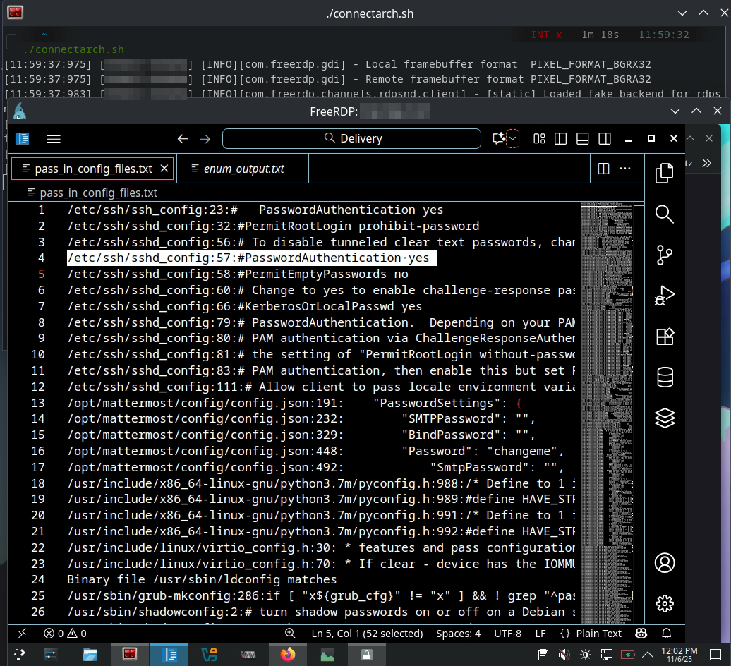 xfreerdp /v:172.16.1.2 /u:<username> /p:$(sudo grep password password.txt | cut -d '=' -f2) /cert:ignore /kbd:French +clipboard +dynamic-resolution +auto-reconnect