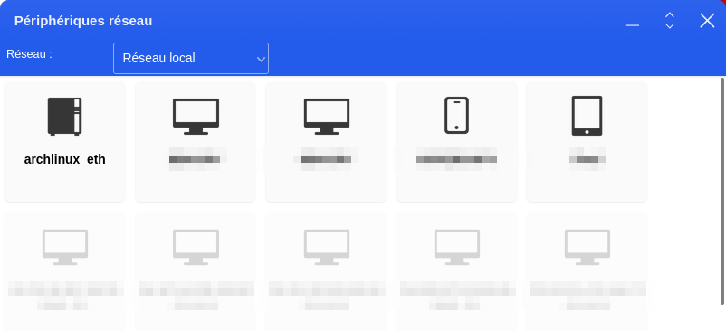 On peut alors cliquer sur “Périphériques réseau” pour avoir la liste de tous les appareils connectés ou qui se sont un jour connectés à notre freebox et trouver notre lab :
